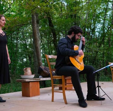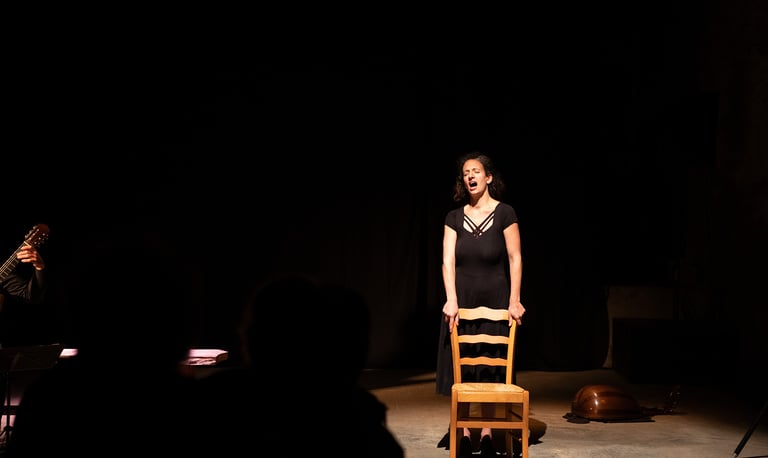 Le plus espagnol des poètes, Federico García Lorca, est mort assassiné en 1936 par les hommes de Franco. Des trésors de chants populaires de son pays, il en a élu treize. Ils disent la conversion forcée, la corrida, la cruauté innommable, les amours volés, les éclats de folie. Sur la table où repose un luth arabe recouvert d’une mantille, le guitariste vient placer un pot de grès rempli d’eau, puis une pastèque. Il s'assoit et joue. Une femme arrive en noir. Ensemble, ils vont traverser les chansons du cycle de Lorca comme autant de stations d’un voyage immobile. À la fin, quand l’eau aura été versée, la pastèque découpée, et quand l’enfant reposera en paix à l’écart, elle dansera pieds nus et repartira. Tout au long du spectacle, la chanteuse tire pour le public le fil de quelques histoires. Elle dit l’espagnol, fait sonner ses mots. Ce spectacle souhaite par sa sobriété donner à sentir quelques évidences et mystères du plus méditerranéen des pays d’Europe, l’Espagne.