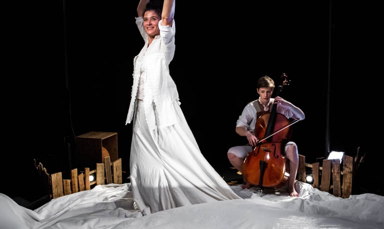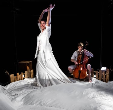 La lumière sert les émotions, l'accordéon et le violoncelle créent une vibration douce et subtile. Les matières souvent détournées sont simples, palpables, elles frôlent le public tout en lui laissant l’espace de son propre imaginaire. Une aventure contée dans une atmosphère poétique, sensible et drôle. Une respiration !